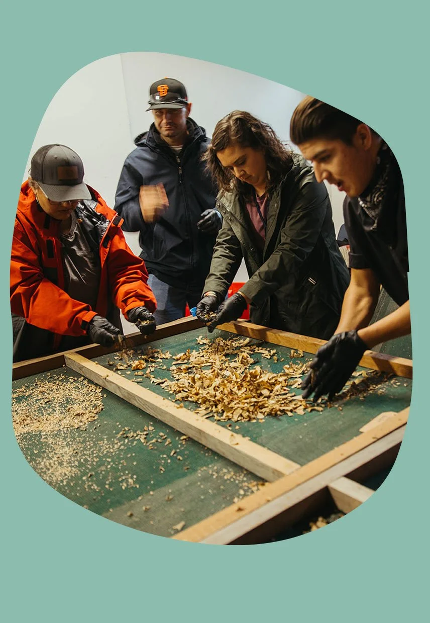 Above: 2024 Indigenous Agroforestry Network Gathering attendees learn how to process maple seeds at the Tsemata Forest Nursery, owned and operated by the Hoopa Valley Tribe. Daisy Autumn Photography
